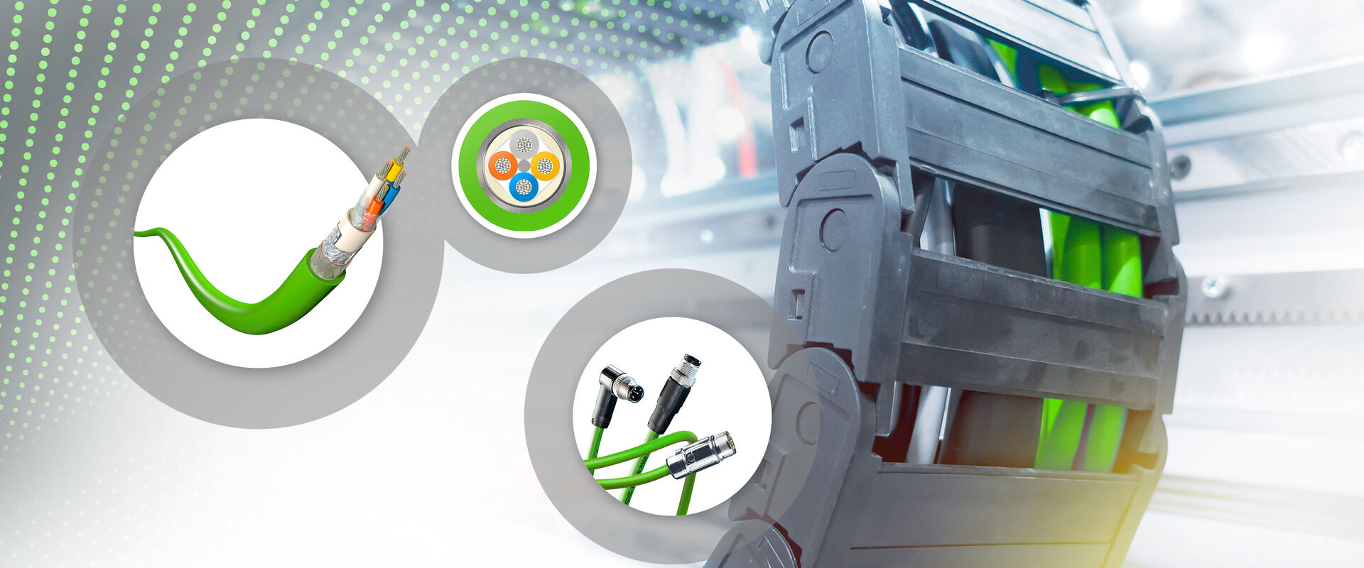 In the field of drive technology, too, the demands on cable systems and pre-assembled modules are increasing rapidly. The transmission of data and power must be fast, interference-free, and reliable. Especially in harsh environments, extremely robust, permanently flexible cables are required that remain durable and reliable even under high mechanical stress, such as in drag chains.